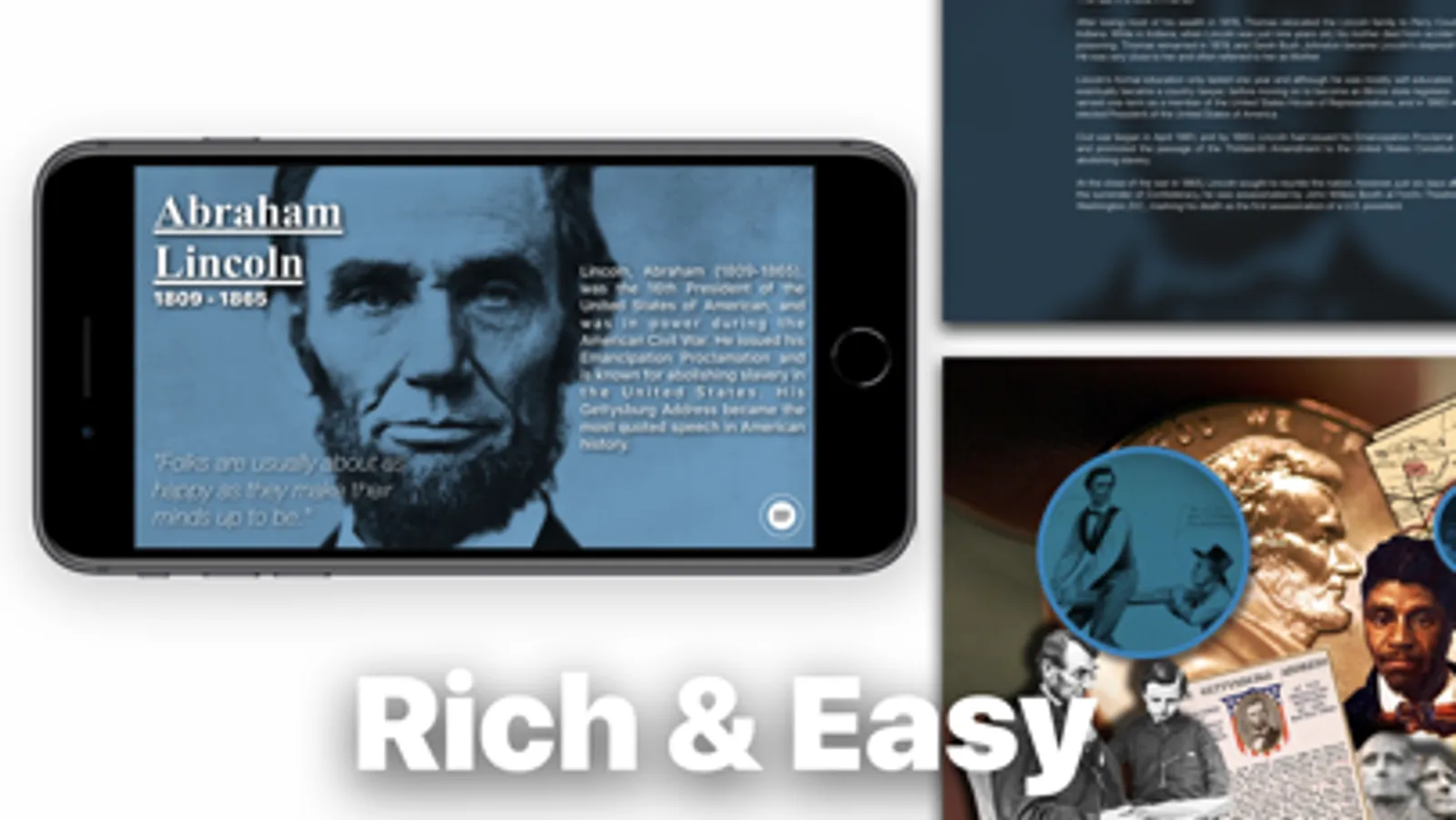 You have an opportunity to go inside the minds and see the world through the eyes of the most talented people of all times. You will find the description of their early lives, accomplishments, major events, death and selected quotes of people who made valuable contributions to society. All biographies come with photos, audio and illustrations.