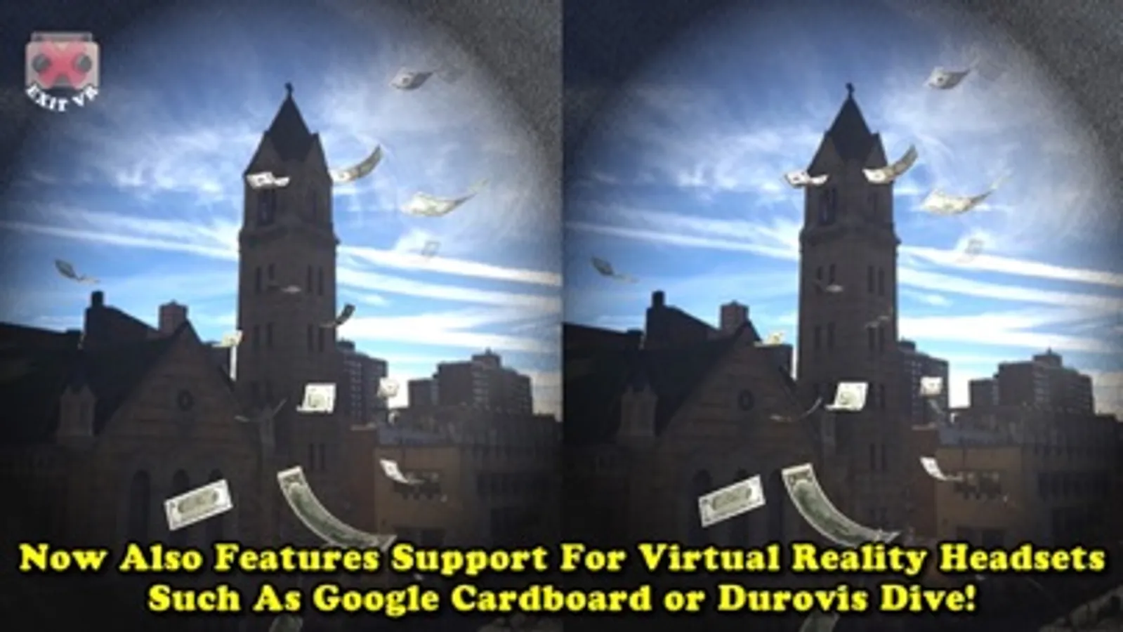 Now also supports Virtual Reality headsets such as Google Cardboard or Durovis Dive, so you can really surround yourself with falling money!