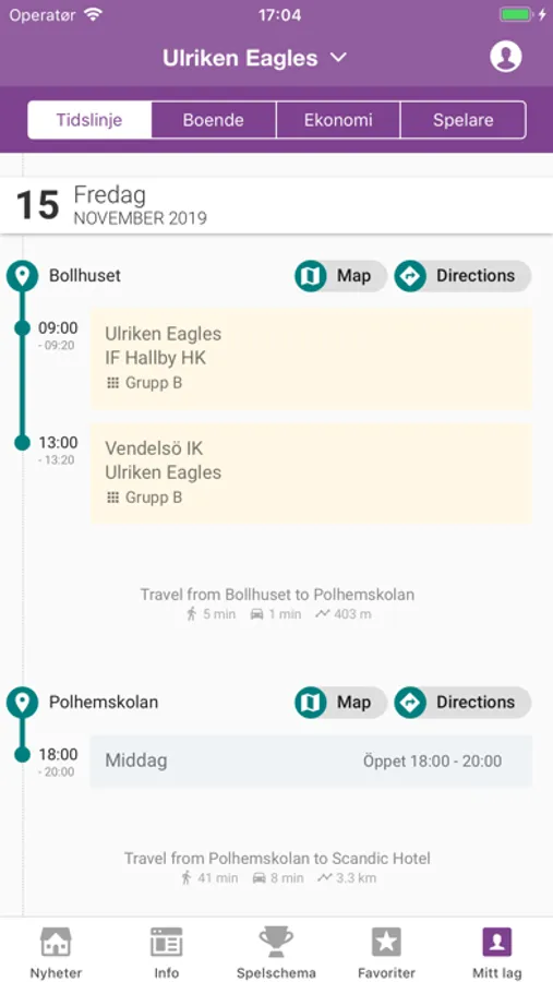 For teamleaders: Log in to My team to see a timeline of the tournament, your accommodation and economy, and to edit players.