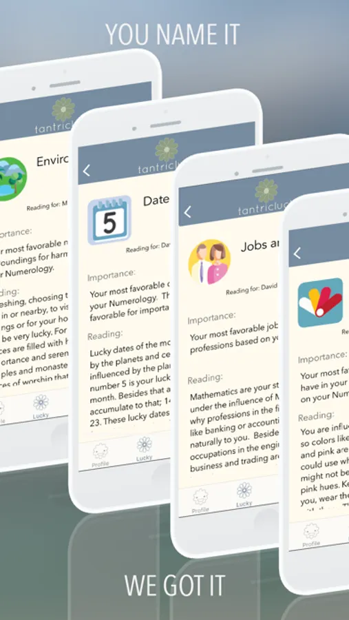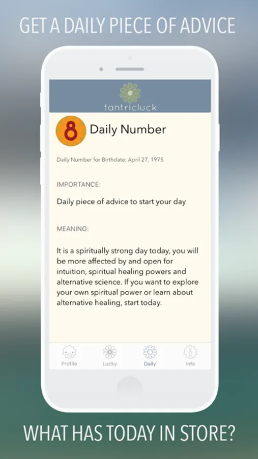 TantricLuck shows you more than 10 most favorable attributes based on your numerology. PLUS a Daily piece of advice. AND your Name Number, which gives you a sneak peak into your hidden characteristics and attributes. All this information is based on Vedic numerology.