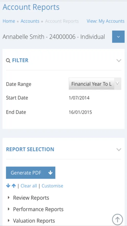 - Keep track of client account details on the go, including the ability to download reports and graphs