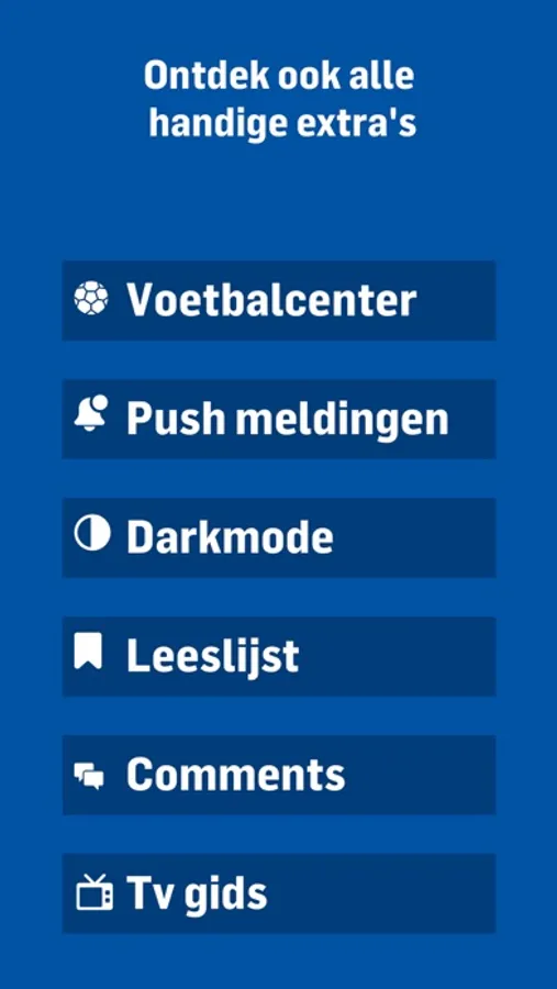 * Voor voetbalfans is er daarnaast ook de voetbalcenter. Hiermee ben je altijd op de hoogte van het voetbalprogramma, de wedstrijduitslagen en de actuele standen.