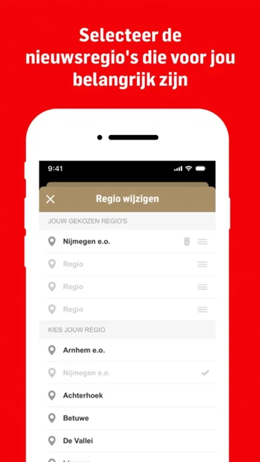 * Regio: het laatste nieuws uit de door jou gekozen dorpen, steden en regio’s.