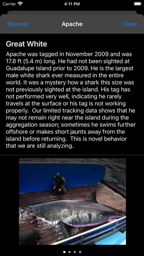 Welcome to Expedition White Shark, the world’s first app designed to track adult white sharks in real time! To make this possible, scientists at the Marine Conservation Science Institute (MCSI) attached custom satellite tags to the dorsal fin of adult Great White Sharks, allowing us to follow their movements from Satellites orbiting the earth. Expedition White Shark allows you to receive near real time Great White Shark tracking data at the same time as the research scientists. Positions for the tagged sharks can only be calculated when a shark is at the surface with its dorsal fin out of the water for several minutes; since sharks are not always finning we receive intermittent position data from our sharks, but each signal beamed to us form space adds to our growing knowledge of the life history of this species. Since you are getting our data in near real time you will notice that the satellites sometimes make mistakes, placing the shark far from its actual location; we correct these errors later, when we analyze the data. The MCSI satellite tagging of Great White Sharks has led to many important new findings regarding white shark biology, and each new day brings promise of a new discovery that you can make with us!