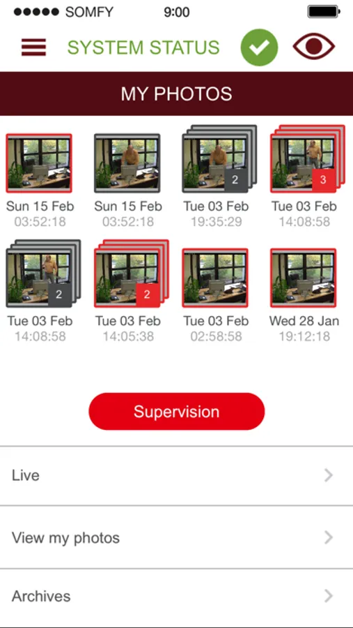 View the photos relating to the alarm or to the supervision of your home, if you have an image movement detector.