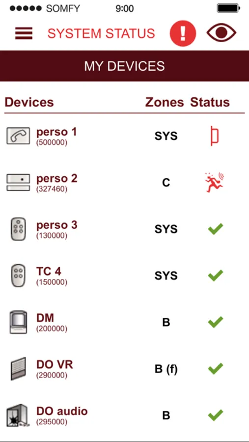 Access to the Event log as well as the List of devices in order to know the status of each element of your alarm system.