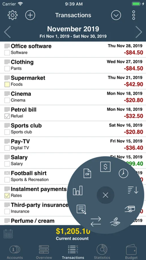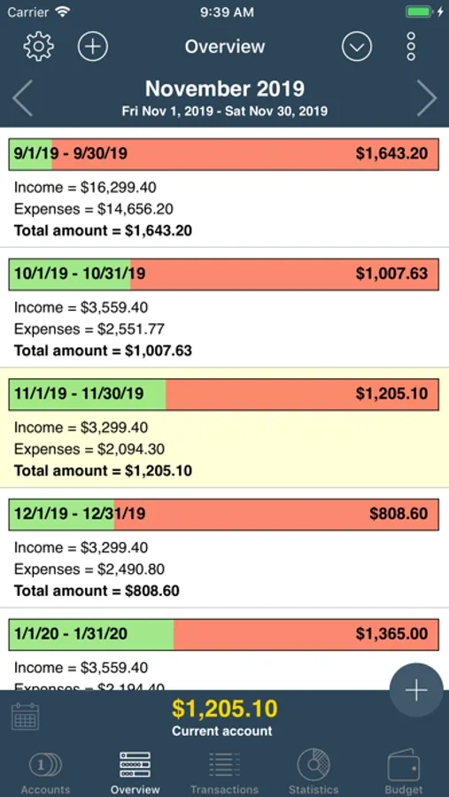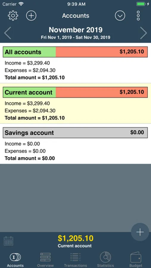 • Varyous views: account balance and monthly balance