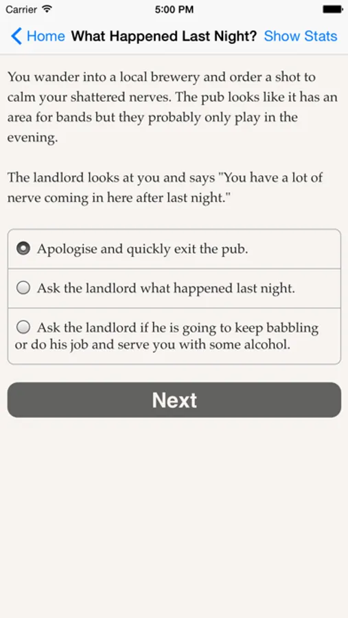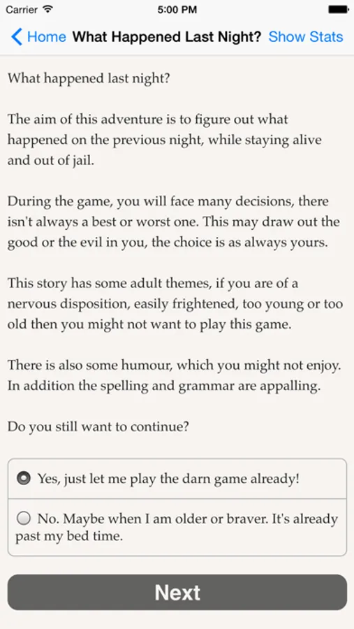 A dark but occasionally humorous action murder mystery multiple-choice text-based game by Kie Brooks.