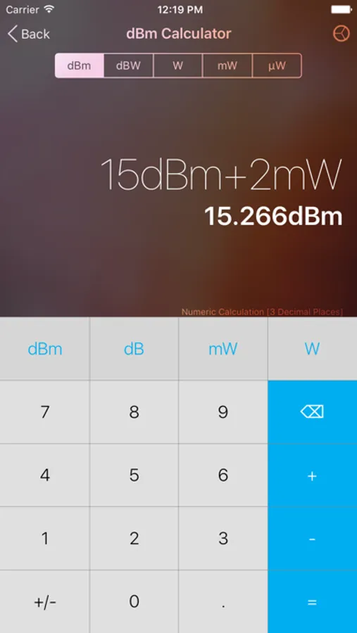 This tools helps to add and subtract an arbitrary number of power levels expressed in units of dBm and watt.