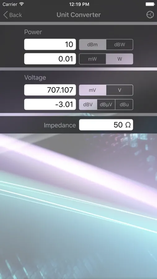 This tool calculates for an entry using a unit such as dBm, dBW, mW, W, mV, V, dBV, dBµV and dBu the corresponding values for all other units, for individual impedance values.