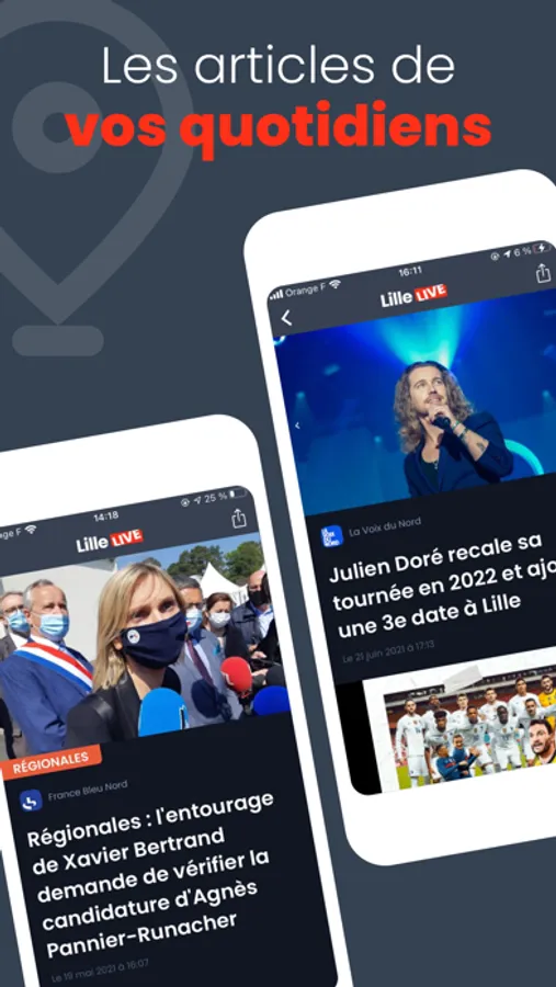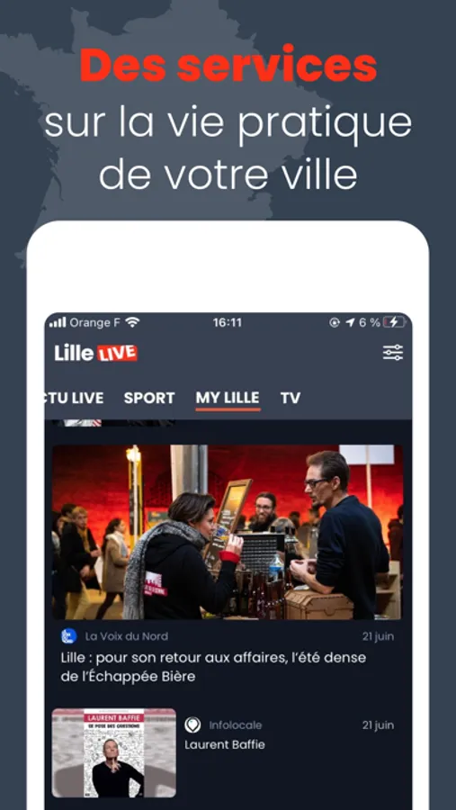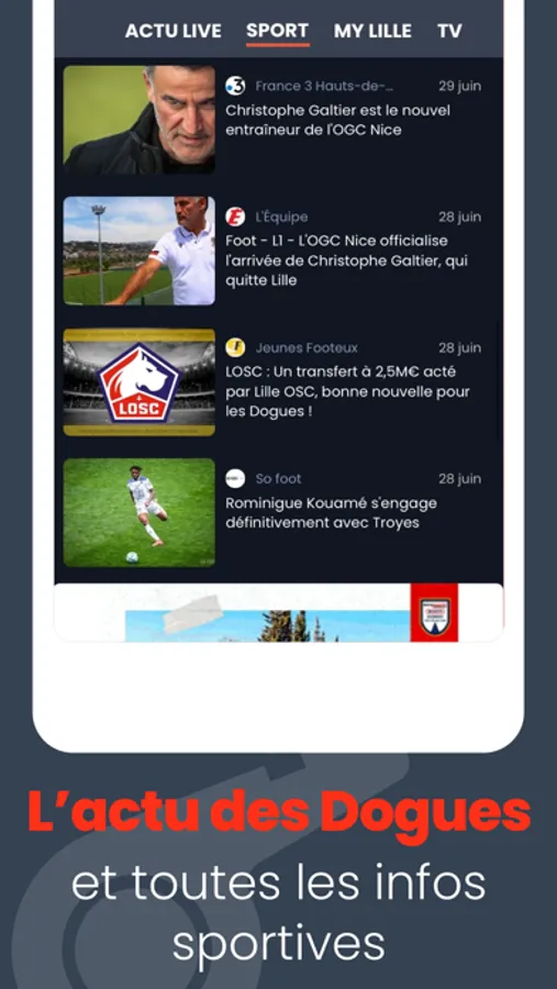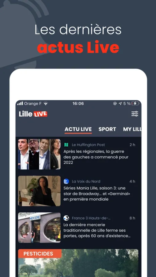 • Accédez aux dernières informations en temps réel à travers nos rubriques thématiques : Actu Live, Sport, My Lille, TV.