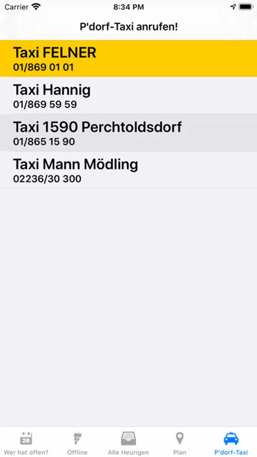 Alle Perchtoldsdorfer Taxi-Rufnummern inkludiert!