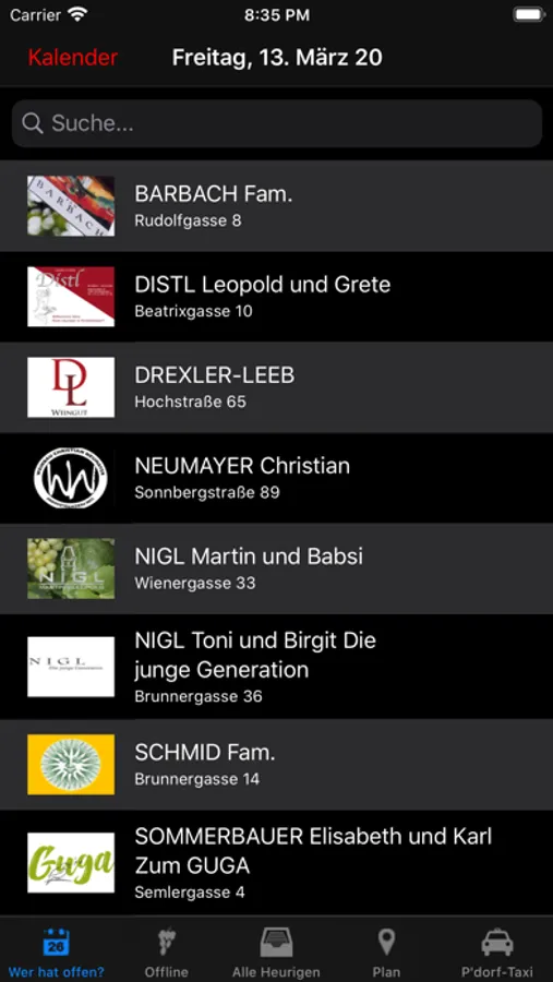 Finden Sie schnell und übersichtlich, wann Ihr Lieblingsheurigen in Perchtoldsdorf ausg'steckt hat.