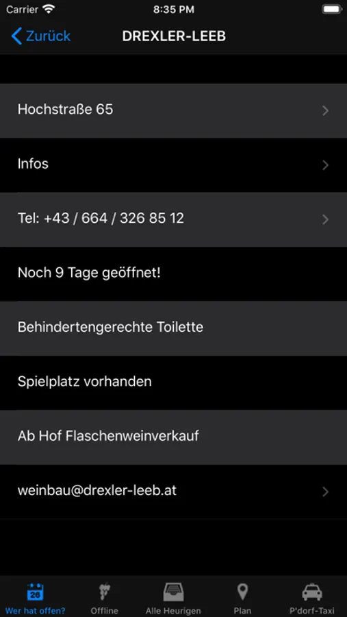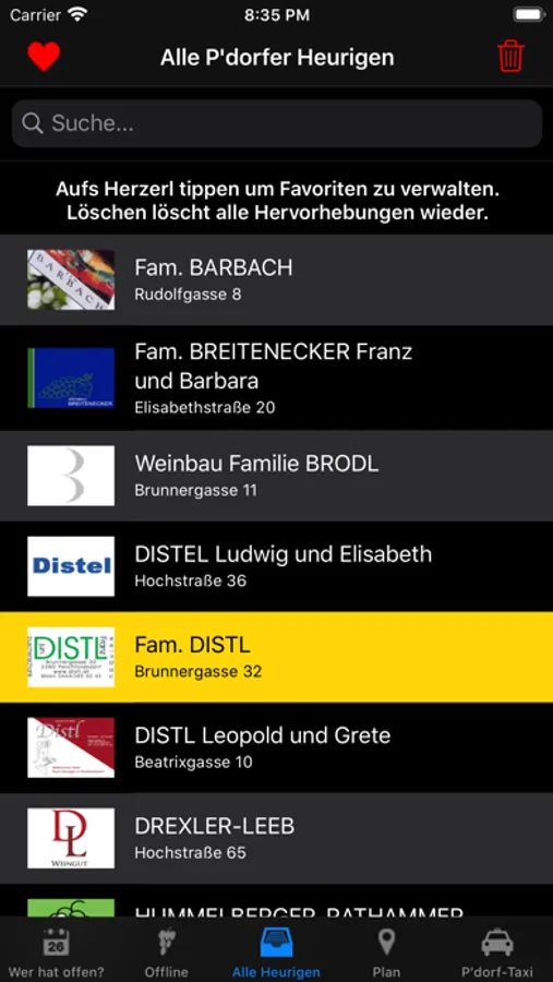 Stecken Sie eine Heurigenroute mit allen offenen Heurigen mit der Karte ab.