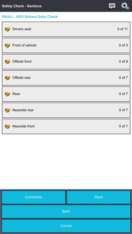 Using an iPhone/iPod/iPad drivers conduct their inspections by scanning in their unique QR code then identifying the vehicle by scanning the vehicle QR tag. The inspections are conducted by placing the hand held reader in close proximity to the tag. The device will read the tag and display the appropriate checks to be completed at the inspection point. With simple tap screen responses the inspection is completed. When defects are discovered, the driver selects the defect description from a pre defined list and indicates whether or not the vehicle is safe to operate with the noted defect.