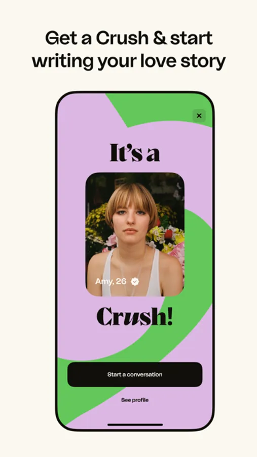 Did someone catch your eye? Like them secretly. We promise, the person will never know, unless they Like you back. Do you want to stand out? Send them a SuperCrush. Now you can send a message before you even get a Crush. And if the Like is mutual, then the Crush is yours! Now you can chat and we’re counting on you to make that first message memorable. Show off your writing skills!