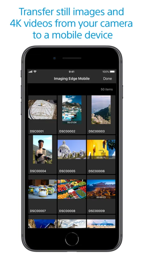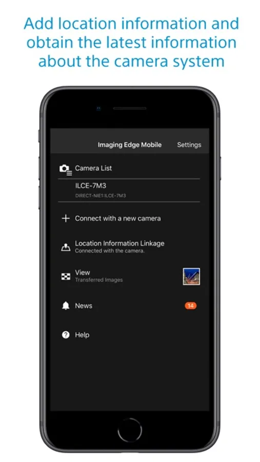 Imaging Edge Mobile allows images/videos to be transferred to a smartphone/tablet, enables remote shooting, and provides location information to images captured by a camera.