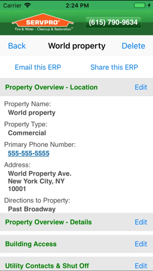 SERVPRO® is a national provider of fire, water, mold and specialty cleanup and restoration services. SERVPRO’s network of 1,600 Franchise Professionals responds to property damage emergencies suffered by businesses and homes. The SERVPRO Ready Plan is a tool for property managers, risk managers and owners, both residential and commercial. It allows the user to create an emergency ready profile of their facility containing critical information to help speed up response time after fire or water damage. Help is then just a few clicks away. The application stores property details, utility shut off locations, key contacts, damage photos, local weather and more.
