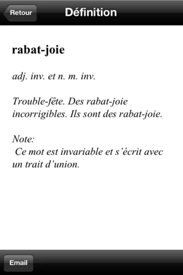 This application is a complete french language dictionary, easy to use and fast. It is the needed tool for people learning or wanting to improve their french.
