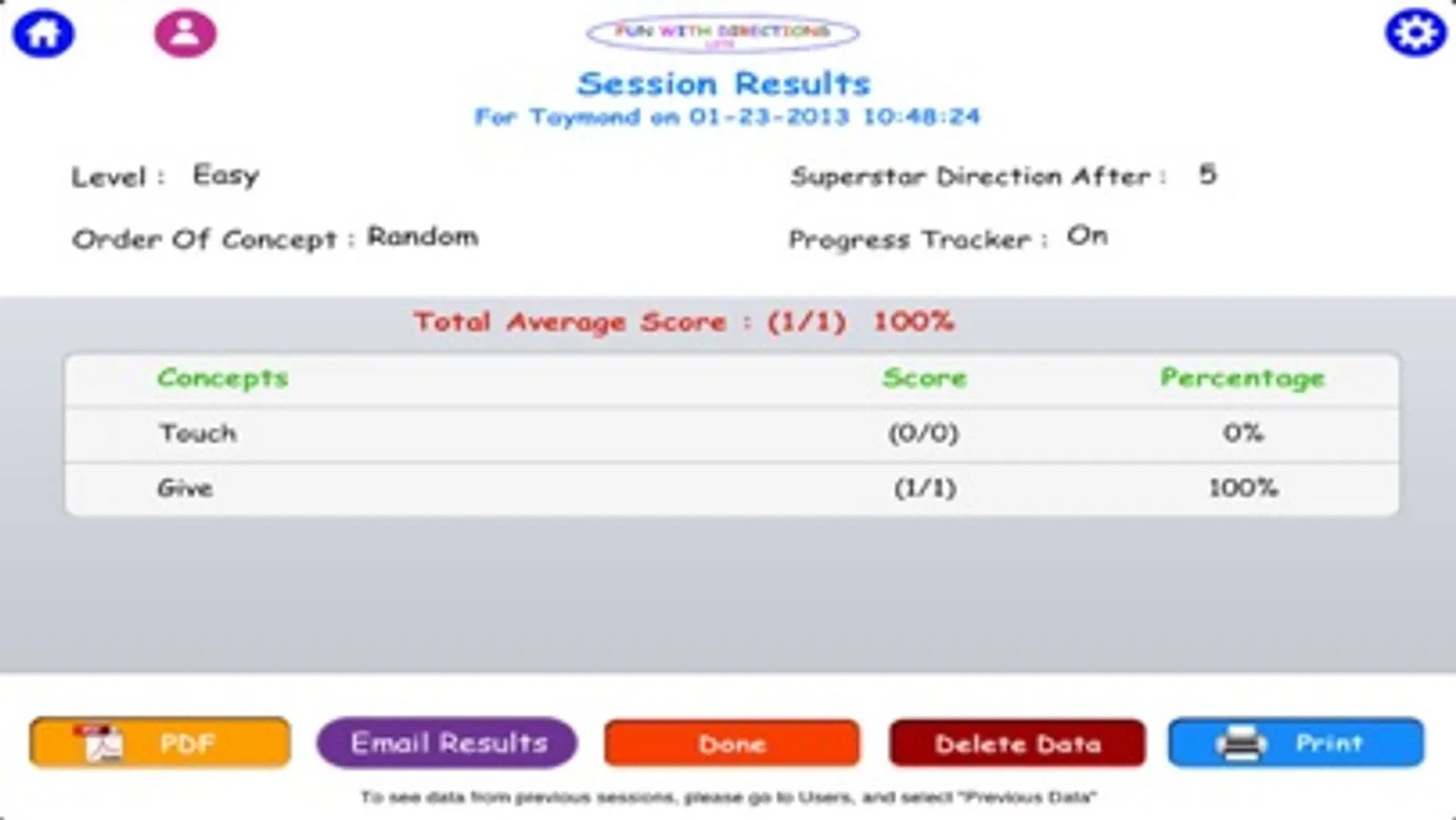 An added bonus that is included in this app is the optional “Superstar Direction” which allows additional practice for remembering (“What did you have to do?”) but also expressive language. The child’s response is recorded and played back. Superstar Directions are surprise questions that pop up at random times, but can easily be turned off if desired.