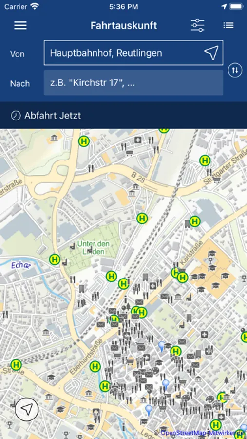 Erfahren Sie schnell, wie Sie von A nach B kommen. Dabei können Sie die Verbindung durch Veränderung der Gehgeschwindigkeit, Alternativhaltestellen oder der gewünschten Verkehrsmittel an Ihre Bedürfnisse anpassen und erhalten so eine auf Sie zugeschnittene Fahrtauskunft.