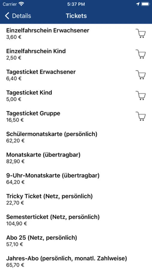 Kaufen Sie Einzelfahrscheine, Tagestickets oder Anschlussfahrscheine bequem per Kreditkarte oder Lastschrift. Tagestickets können Sie zudem bis zu 31 Tage vordatiert erwerben – für die optimale Vorbereitung Ihrer Reise. An Netztickets und Anschlussfahrscheine gelangen Sie über den Direktkauf, für alle anderen Tickets rechnen Sie vorher eine Verbindung. Zudem können Sie häufig genutzte Tickets als Favoriten speichern.