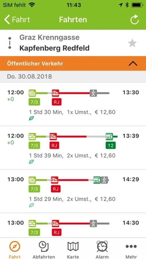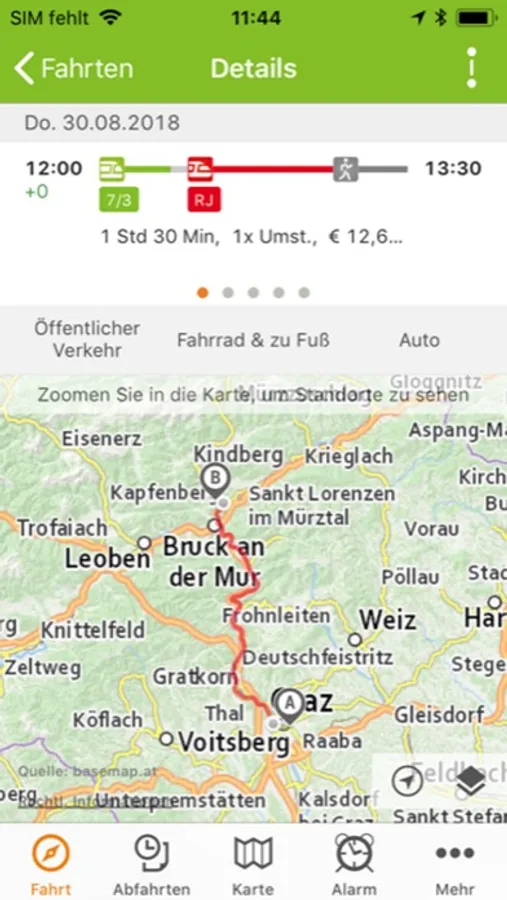 With the BusBahnBim App you will always find the best route in all of Austria: whether by public transport, on foot, by bike or by car. Based on the Traffic Information Austria (VAO), the multimodal app is working multimodally – you can also combine with functions like Bike & Ride, Park & Ride, Kiss & Ride and Car Train.