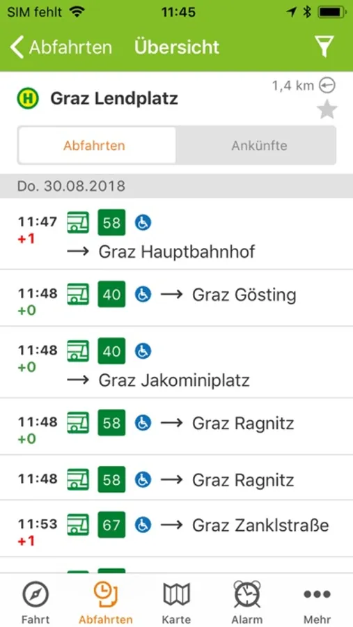 BusBahnBim works simply by address input and always uses the most up-to-date data. For example, the current traffic situation can also be included, including construction sites, congestion, delays, diversions, etc. Also stop-call names are no longer necessary for the query, by activating the GPS-positioning, the current location can be used as the starting point. Optionally, the desired destination address, a street name or point of interest can be used.