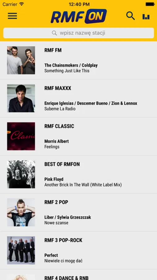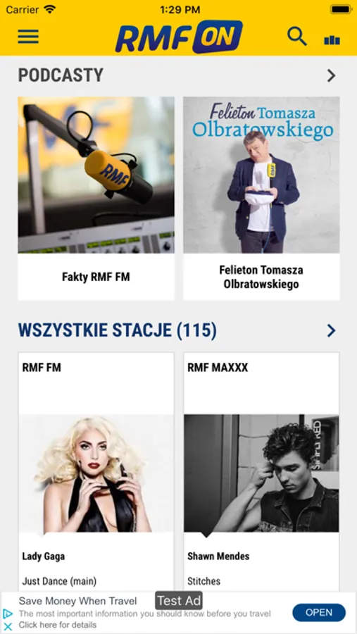 • Radia na żywo: RMF FM, RMF MAXXX, RMF Classic.