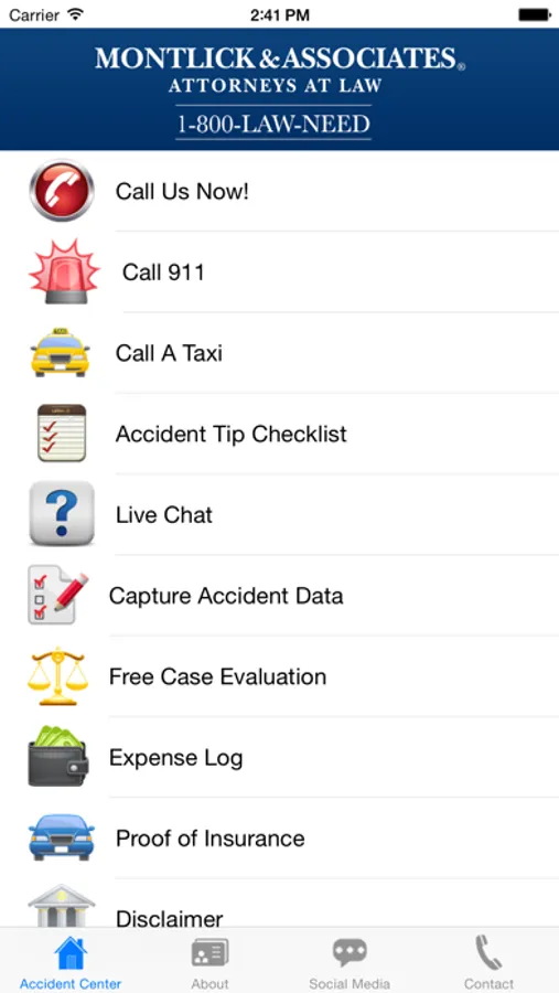 The Montlick Mobile Accident Help app from Montlick & Associates is designed to help anyone who has been involved in an accident. The app contains useful functionality to help you record accident data as well as information you may need to record afterward. This app includes: