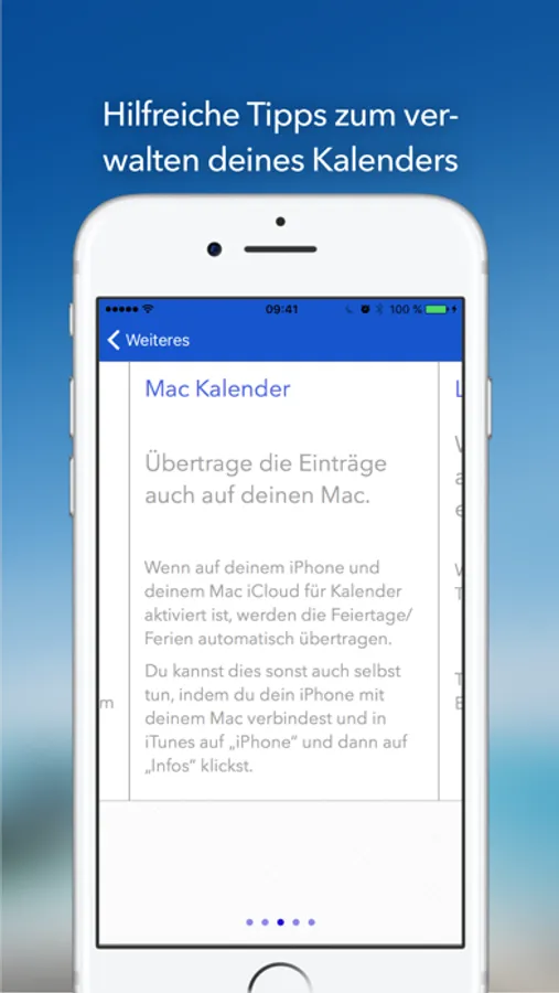 -Lese die Tipps in der App, um von praktischen Funktionen des Kalenders zu erfahren.