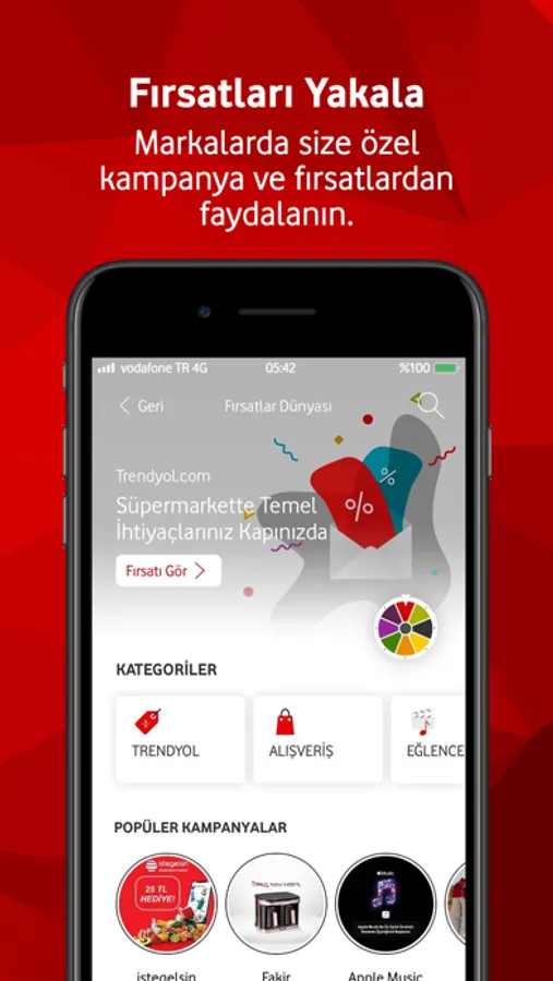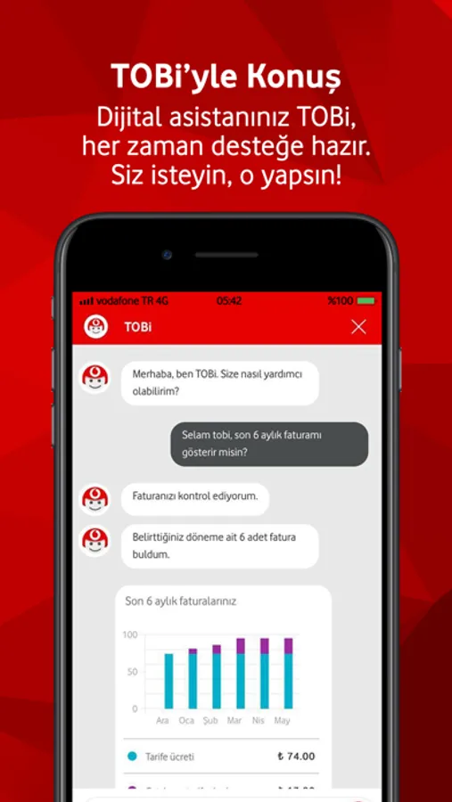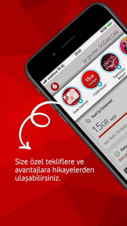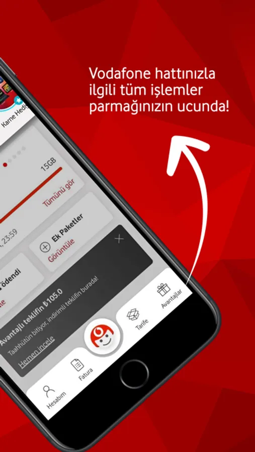 Vodafone Yanımda uygulamasını telefonunuza indirip, hattınızla ilgili bir sürü işlemi hiçbir ücret ödemeden* yapabiliyor ve size ozel fırsatları takip edebiliyorsunuz.