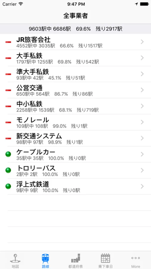 日本中のすべての鉄道駅に乗下車する「降りつぶし」を管理します。