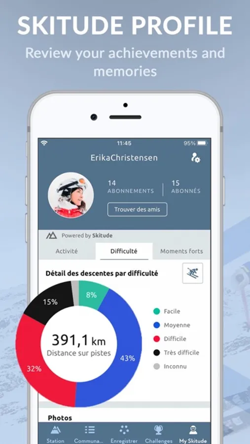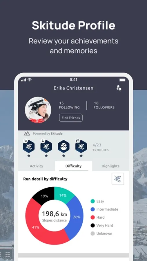 The App offers a range of features designed to optimize your experience before, during and after your trip. It’s very simple, plan your getaway and get real time updates on slope conditions. Set up your Skitude profile and track your activities on the slopes to get detailed stats about all your activities. And that’s not all, take part in challenges competing with the whole community, to be in with a chance of winning incredible prizes.