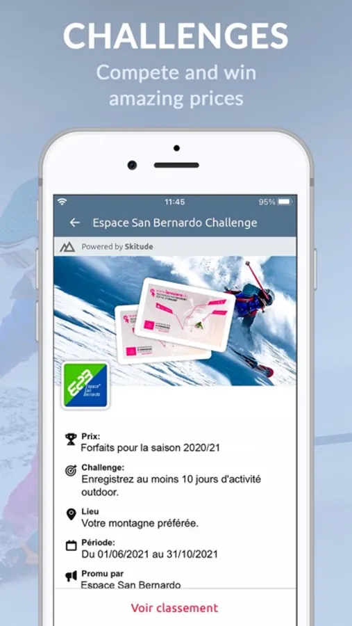 Set up your Skitude profile to track your activities using the GPS tracker. Find out where you are in the season's rankings and try to complete the challenges to be in with a chance of winning great prizes.