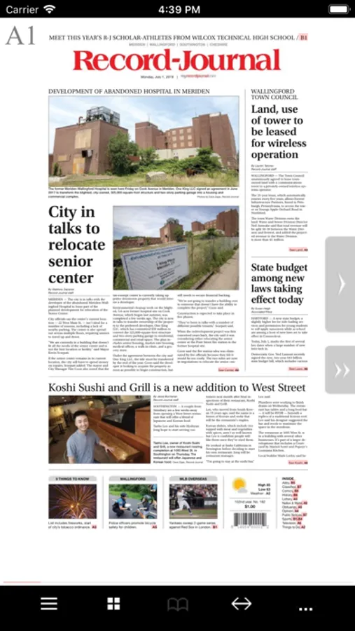 Enjoy the Record-Journal’s award-winning journalism conveniently delivered daily to your iOS device with the Record-Journal newspaper in iOS replica format. This easy-to-use app allows you to view pages of each day’s Record-Journal newspaper, to use the zoom functions, and to tap articles to read the text below. Thirty days of archives of the replica newspaper are available at any time.