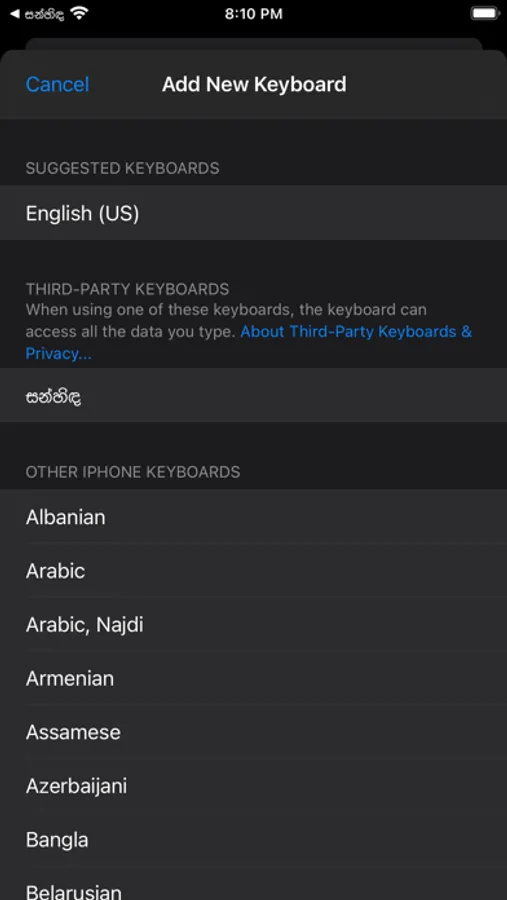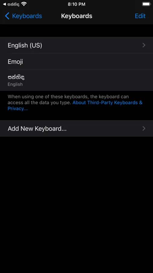 Sanhinda Sinhala Keyboard Extension is an Easy, Secure, and Fast Sinhala Keyboard for your iPhone and iPod. The system-wide Sanhinda Keyboard enables much familiar Singlish to Sinhala Unicode Typing.