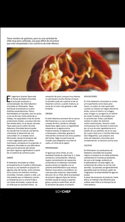 SOY CHEF es una publicación especializada en el ramo de la gastronomía, dirigida al medio profesional: chefs, gerentes y directores de alimentos, foodservice, propietarios de restaurantes, institutos culinarios, así como para foodies y cualquier persona apasionada con el mundo de la alta gastronomía.