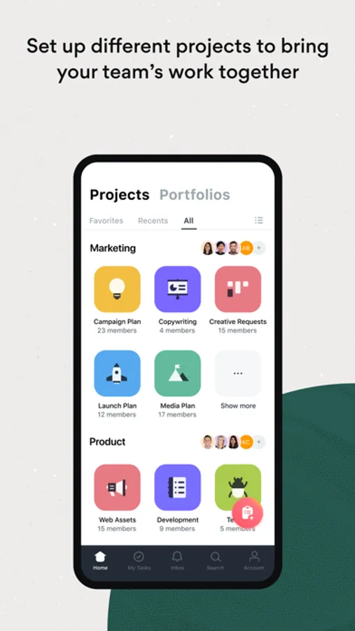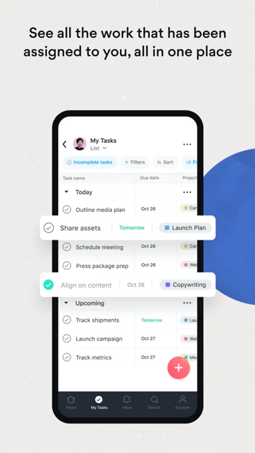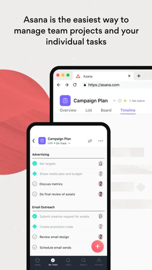 Access Asana on mobile or on the web. Project management doesn’t stop at your desk—no matter where you are, stay focused and keep your team’s work on track.
