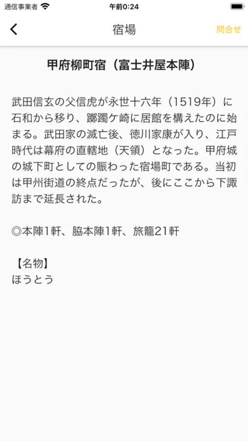 本アプリは、江戸日本橋から下諏訪宿内の中山道合流までをポイントしています。