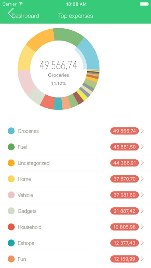 • Expenses - arguable the most frustrating thing to manage on Earth. Now, simplified with TapToTrack. You can see all of your expenses in a futuristic pie-chart and even view your top expense, within a few seconds.