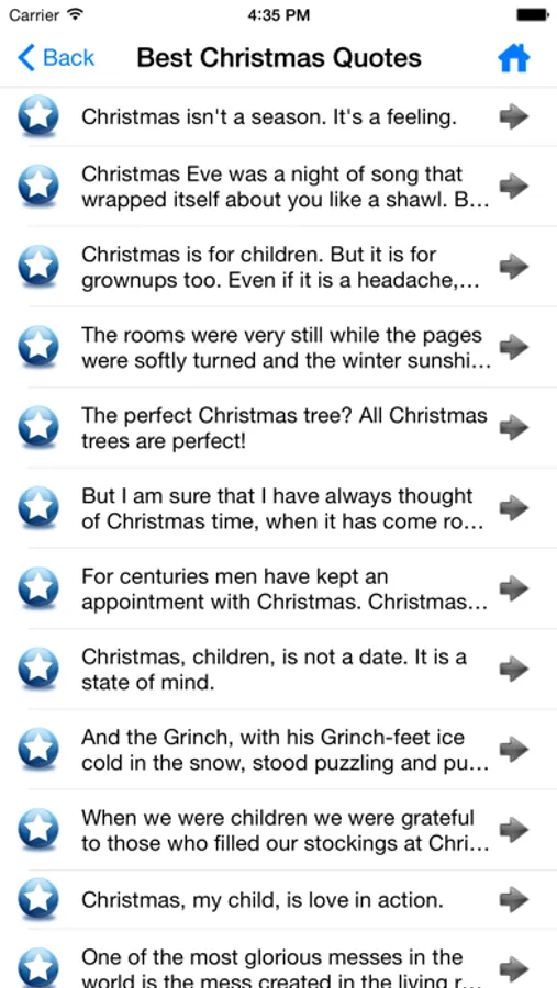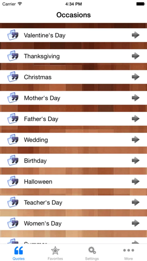 This free application contains over 2300 occasions quotes but you can view around 388 quotes (4 quotes for each occasion's category). If you really like this application and want to access all of the occasions quotes please buy using In-app purchase.