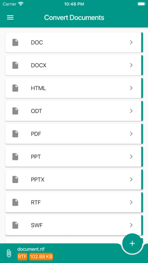 Convert Documents allows you to convert almost all known document formats to DOC, DOCX, SWF, HTML, ODT, PDF, RTF, TEX, TXT, LaTeX, ConTeXt, Markdown and more! Convert existing documents, images or other file formats to these document formats. And after the conversion you can use multiple ways of sharing them!
