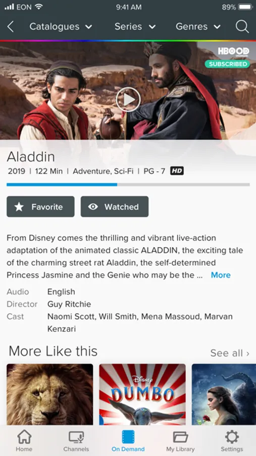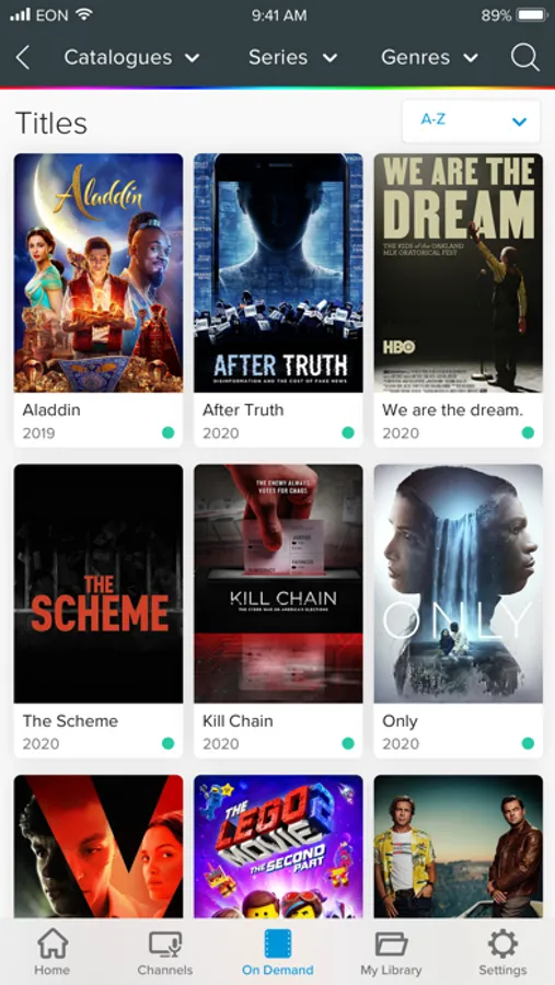 Video on Demand catalogue: movies, series, cartoons