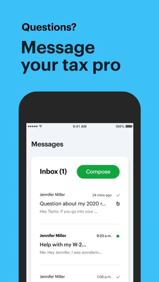 Get in touch with an H&R Block tax pro any time of the year, with secure messaging, screensharing, and video chat capabilities.
