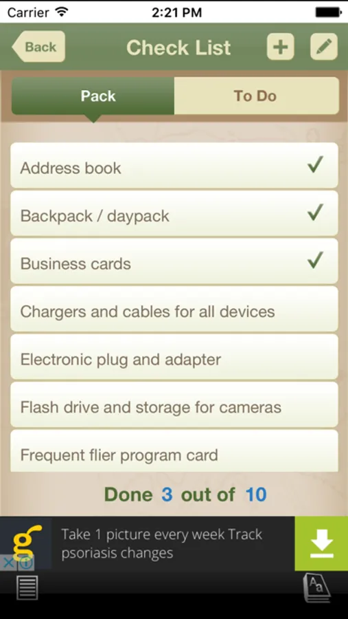 * Built-in “must-pack” and “to-do” dictionary.