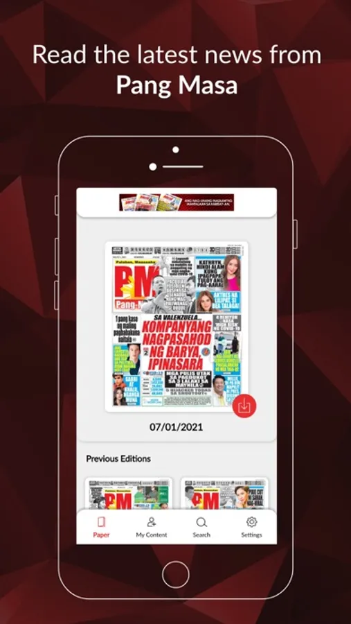 As its name denotes, Pang Masa is a nationwide daily catering to Filipino-language readers of news, entertainment, sports, etc. Pang Masa is a member of The Philippine STAR Group of Publications, the Philippines' biggest newspaper group. Pang Masa is a daily paper.