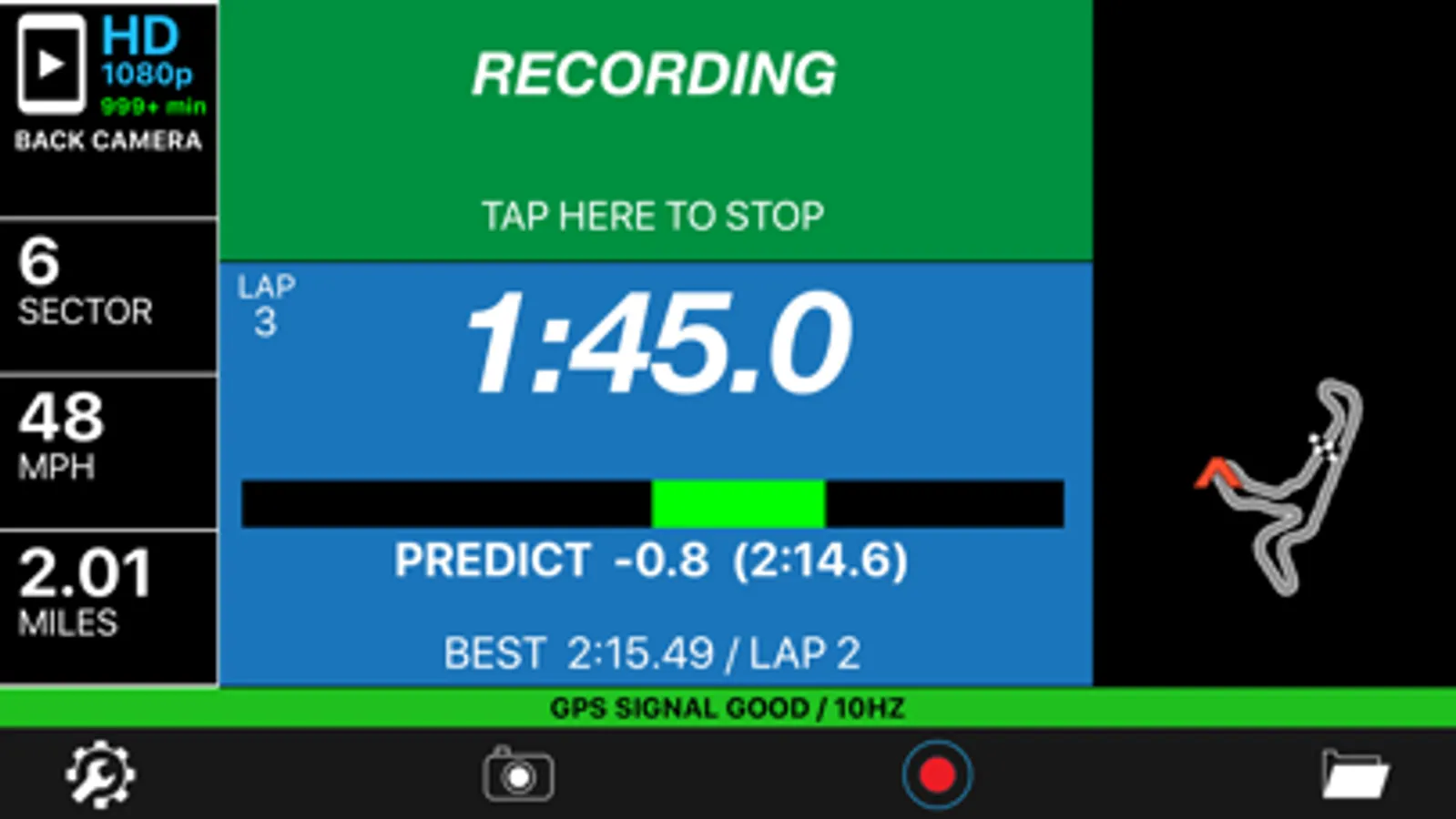 • GPS Lap Timer & Display with Predictive Timing (Circuit mode)