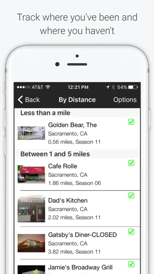 We've collected all the locations for you, geo-located them, and organized them by season and state. Every venue from the show is in the app, including the closed locations or those that have changed hands and names.