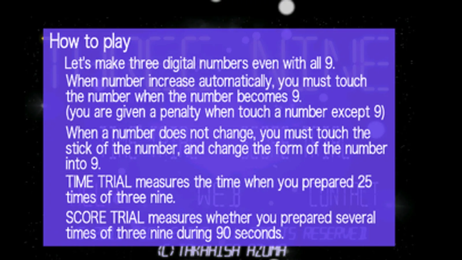 TIME TRIAL measures the time when you prepared 25 times of three nine.